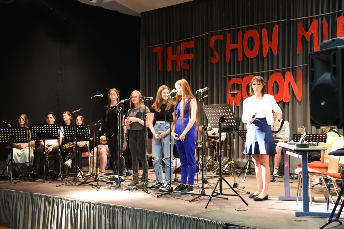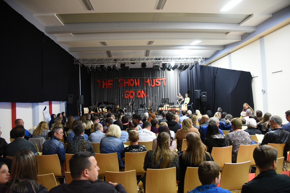 Vor den einzelnen Auftritten gaben die jeweiligen Stars beim Friseur und in der Maske Privates und Berufliches preis. Das Programm, das das zahlreich erschienene Publikum mit jeder Menge bekannter Lieder unterhielt, entwickelte sich aus einer Idee der Musikerinnen und Musiker der 7. Klasse und wurde mithilfe der engagierten Schülerinnen und Schüler der 5. und 6. Klasse und den Lehrerinnen Katharina Wagner, Susanne Niederhofer (Texte, Schauspiel, Regie), Anja Temmel (Bühnenbild) und Gudrun Schiefer- Hoyer (Musik) unter Mithilfe von Renè Kogler und Erich Niederhofer auf die Bühne gebracht.