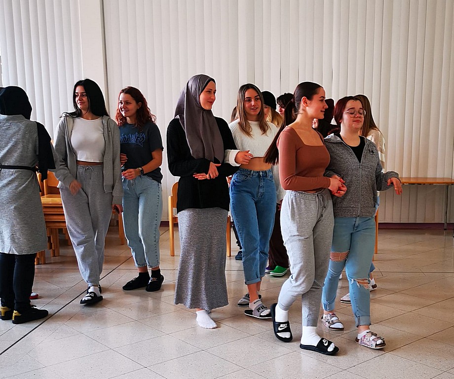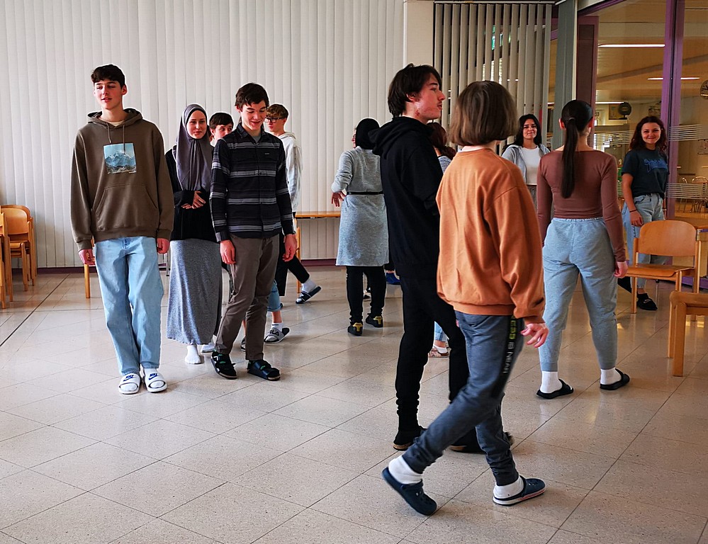 Zwei erfahrene Theaterpädagog:innen des Schauspielhauses Graz bearbeiteten mit den Schüler:innen den Inhalt des Stücks. Wichtig dabei war – neben inhaltlichen und historischen Fakten und Gegebenheiten zur Entstehungszeit – auch das aktive Spiel. So wechselten theaterpädagogische Übungen mit Szenen aus dem Stück ab. Die Teilnehmer:innen waren gefordert, selbst Theater zu machen und diese Szenen nachzuspielen, um das Stück mit allen Sinnen zu erleben.