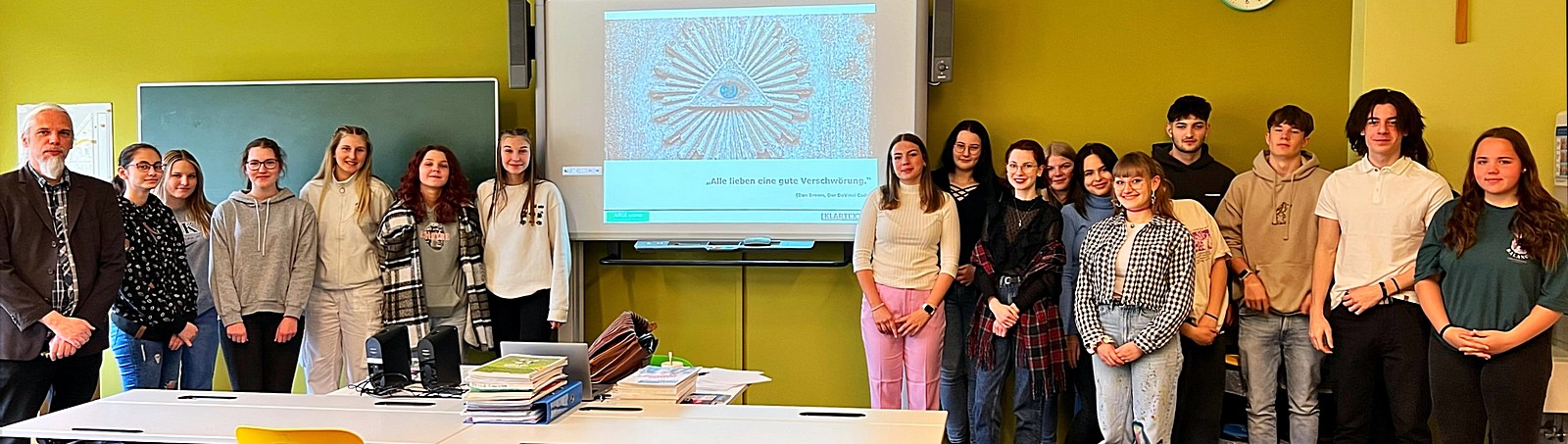 Am ersten Tag nach den Osterferien beschäftigten sich die Schülerinnen und Schüler der 7. Klasse in einem zweistündigen Workshop der ARGE Jugend gegen Rassismus und Gewalt mit dem in der heutigen Gesellschaft überaus präsenten Thema „Verschwörungstheorien“. Die jungen Leute widmeten sich unter anderem den Fragen, warum Verschwörungstheorien gerade in Krisenzeiten gehäuft auftreten, wie Verschwörungstheoretiker gezielt die Vorliebe des menschlichen Gehirns für einfache Zusammenhänge und den Kampf zwischen Gut und Böse für sich nutzen und welche Rolle das Internet in Bezug auf die Verbreitung solcher Ideen spielt.