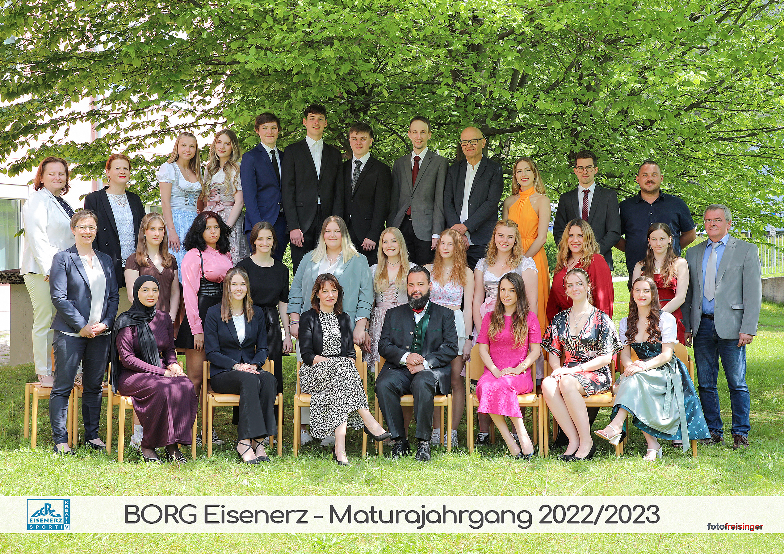 Vor vier Jahren fiel die Entscheidung, im BORG Eisenerz die Reifeprüfung zu absolvieren. Die vergangenen Jahre nützten die Jugendlichen dazu, sich durch eine umfassende Allgemeinbildung ihrer persönlichen Stärken bewusst zu werden – ein wesentlicher Grundstein dafür, im Zuge des Erwachsen-Werdens eigenständig die richtige Berufsentscheidung treffen zu können. Ein Extra-Zuckerl war schließlich die Möglichkeit, den persönlichen Interessen entsprechend einen sportlichen oder musisch kreativen Schwerpunkt wählen zu können Nun dürfen sich die jungen Leute stolz als jüngste Absolvent:innen bezeichnen. Bereits im April dieses Jahres, als der Startschuss zur diesjährigen Reifeprüfung fiel, stellten die jungen Damen und Herren im Rahmen der Präsentation ihrer vorwissenschaftlichen Arbeit ihr umfassendes Wissen und die Fähigkeit, dieses spannend und selbstsicher zu präsentieren, eindrucksvoll unter Beweis. Aber auch die schriftliche Reifeprüfung sowie die mündlichen Prüfungen haben die Maturant:innen erfolgreich gemeistert. Und zusätzlich haben viele von ihnen freiwillig attraktive Zusatzausbildungen abgeschlossen. Die dabei erworbenen Zertifikate wurden im Rahmen einer überaus stimmigen und festlichen Maturafeier gemeinsam mit dem lang ersehnten Reifeprüfungszeugnis feierlich überreicht.