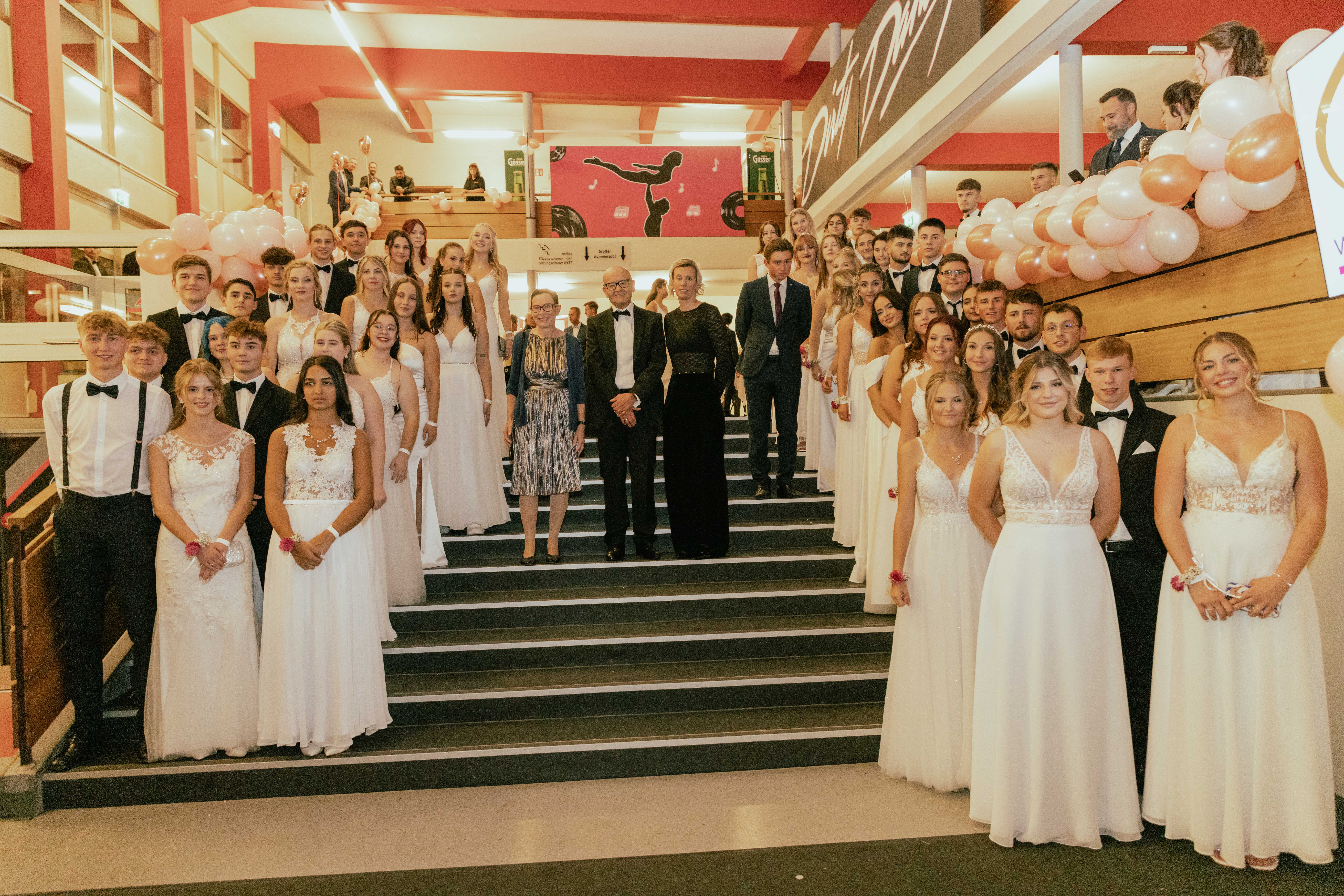 Unter dem Motto „Dirty Dancing – auch der letzte Schritt sitzt“ begann ein fulminanter Abend mit einer eindrucksvollen Polonaise mit Takten aus dem allseits bekannten Musikfilm. Die Choreographie, erarbeitet und einstudiert durch die Tanzschule Glauninger, verlangte von den Maturantinnen und Maturanten höchste Konzentration und körperliche Anspannung, und so wurden die Schritte und Hebefiguren auch ausgeführt: Perfekt, fast wie in der originalen Filmvorlage mit Jennifer Grey und Patrick Swayze.