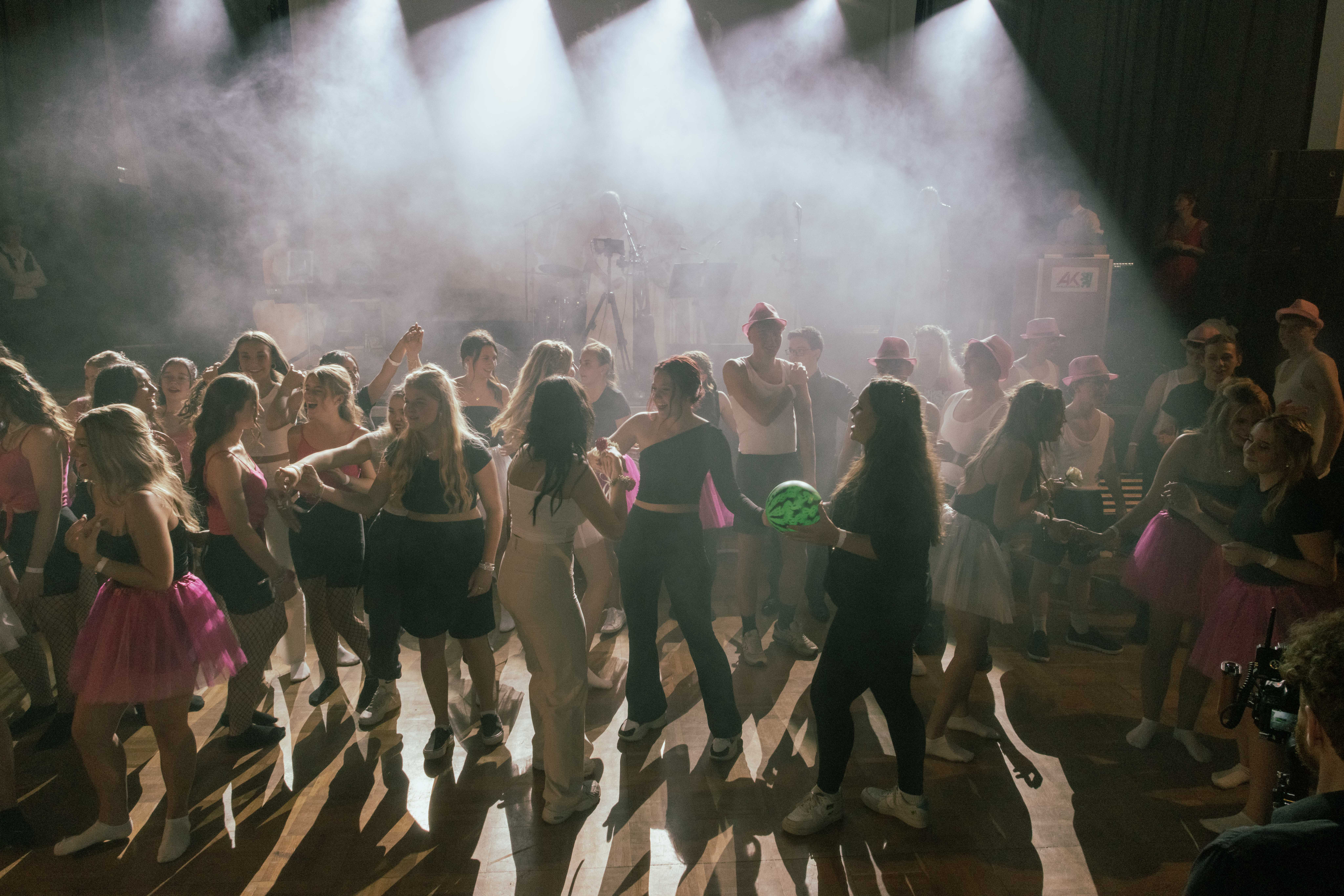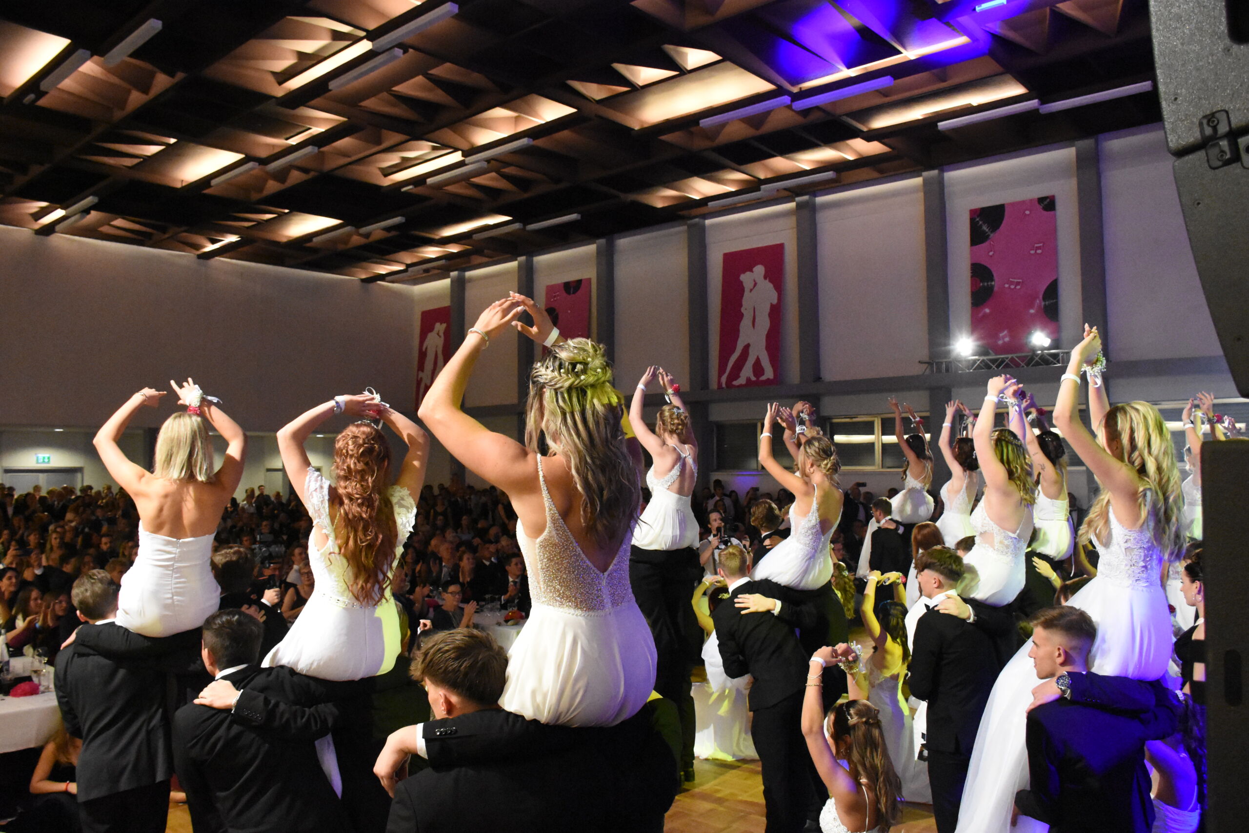 Das Ballmotto „Dirty Dancing“ stand auch bei der gemeinsamen Mitternachtseinlage im Mittelpunkt. Die Schülerinnen und Schüler unterhielten als laszive und rockige ältere Damen, verträumt-romantische Tänzer in den School-Boygroups und mit Hip Hop. Aber auch einige Lehrerinnen und Lehrer waren als Ballerinen zu Takten aus „Schwanensee“ mit dabei.
