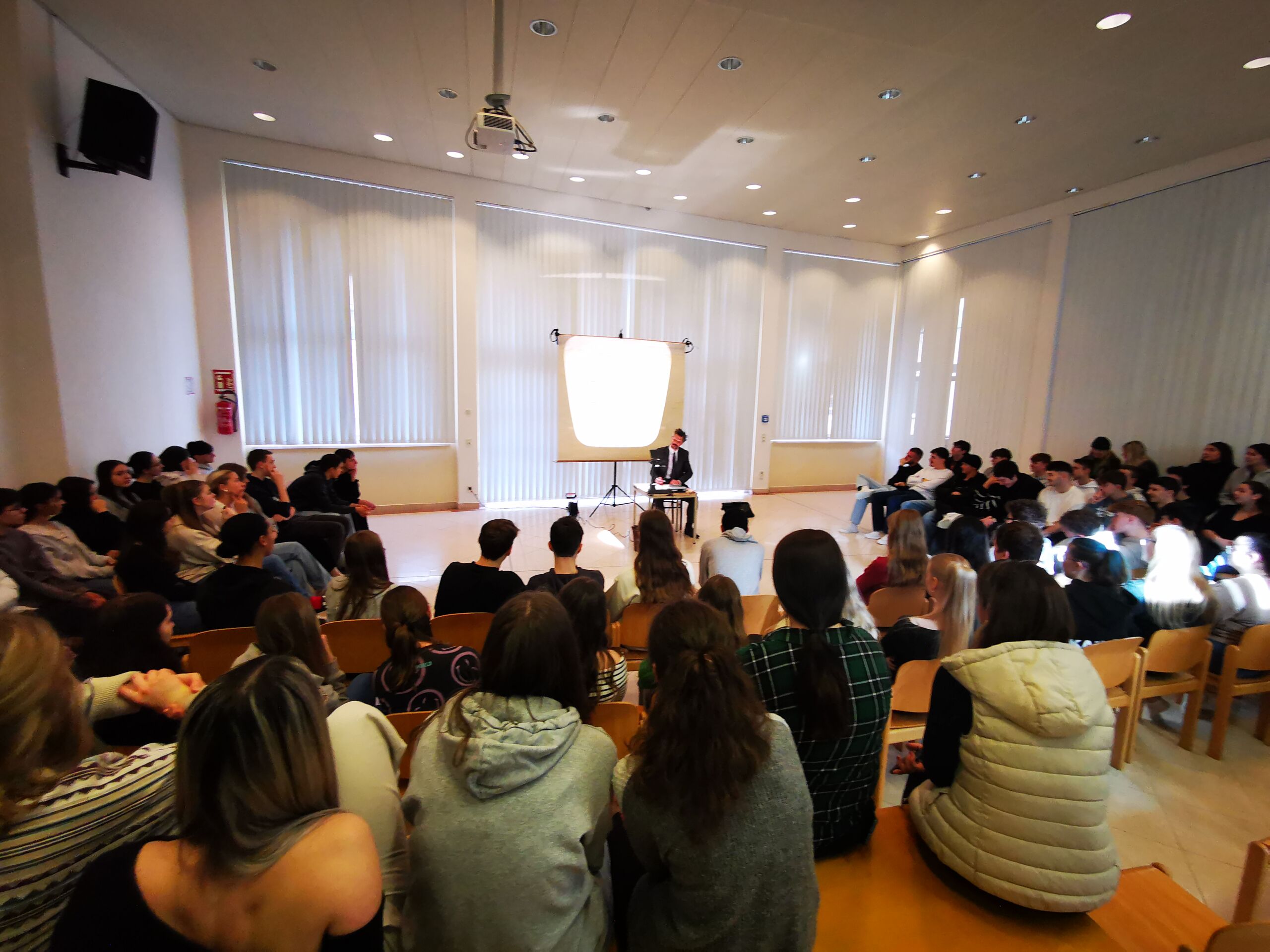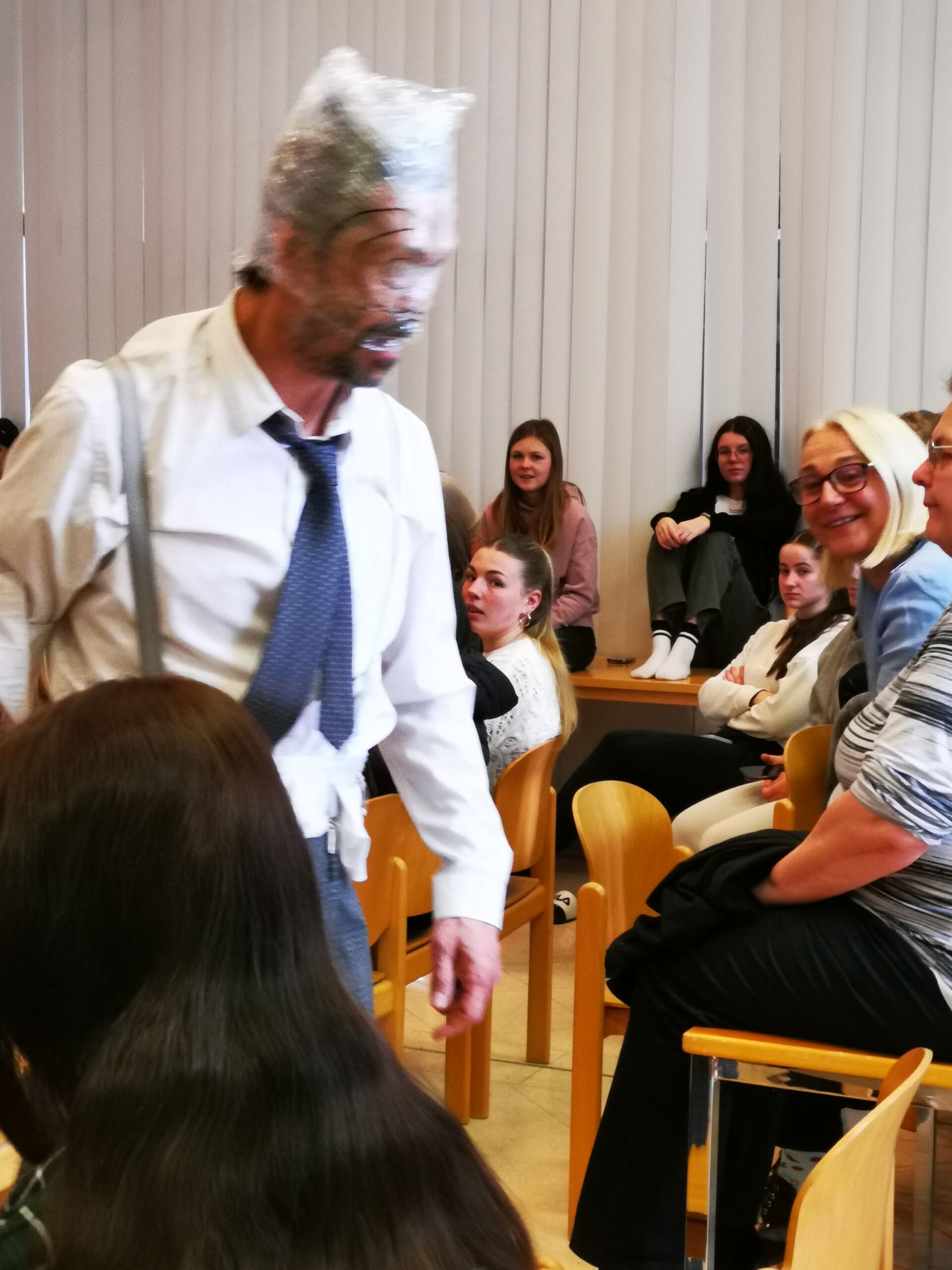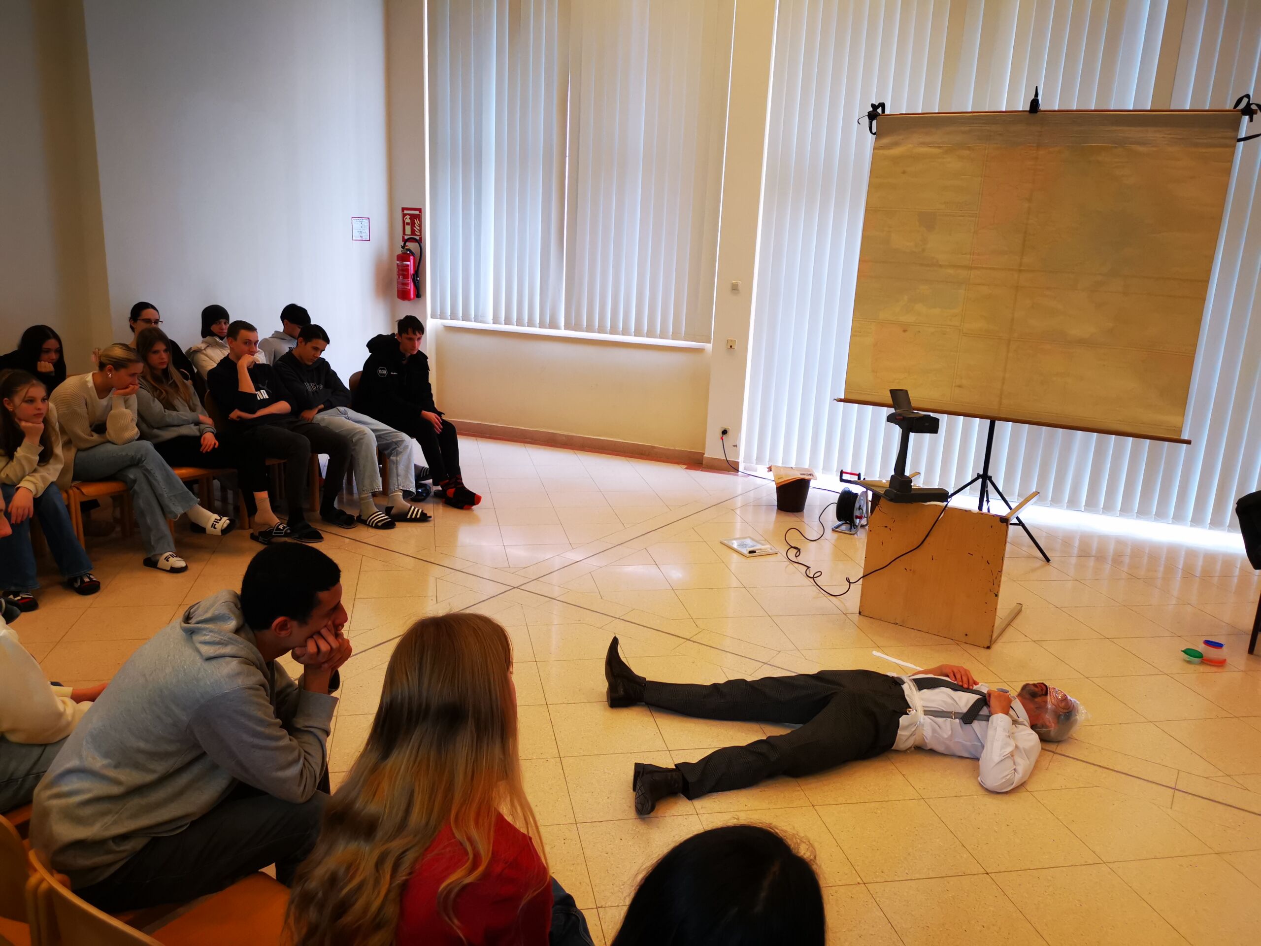 Franz Kafkas „Die Verwandlung“, inszeniert und gespielt von Matthias Ohner vom Vorstadttheater Graz stand für die Schüler:innen des BORG und der HAK in Eisenerz am Programm. Eindrucksvoll verwandelt sich im Text Kafkas Gregor Samsa ja bekanntlich in ein Insekt, eindrucksvoll verwandelte Matthias Ohner die Aula des Schulzentrums in die samsaeske Wohnung und sich selbst in das Insekt. Die schauspielerische Leistung Ohners im Rollenwechsel von Insekt zu Erzähler und Mitbewohner war Theater auf höchster Stufe. Eindrucksvoll inszeniert und beeindruckend wirkungsvoll.