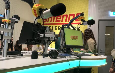 Einen Blick hinter die Kulissen warf die 6A im Rahmen von „Antenne Steiermark macht Schule“. Die Schüler:innen hatten die Gelegenheit, Radioluft zu schnuppern, in die Rolle von Moderator:innen zu schlüpfen und selbst im Radio zu sprechen. Mit Hilfe professioneller Anleitung und Unterstützung wagten sie sich mutig vor das Mikrofon und präsentierten ihren eigenen Beitrag.