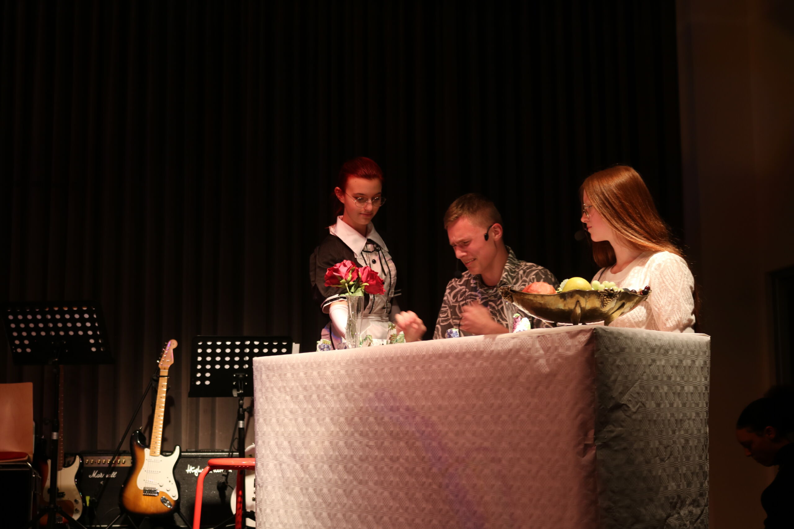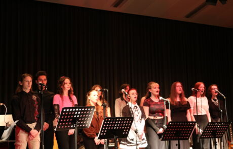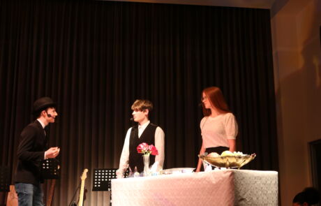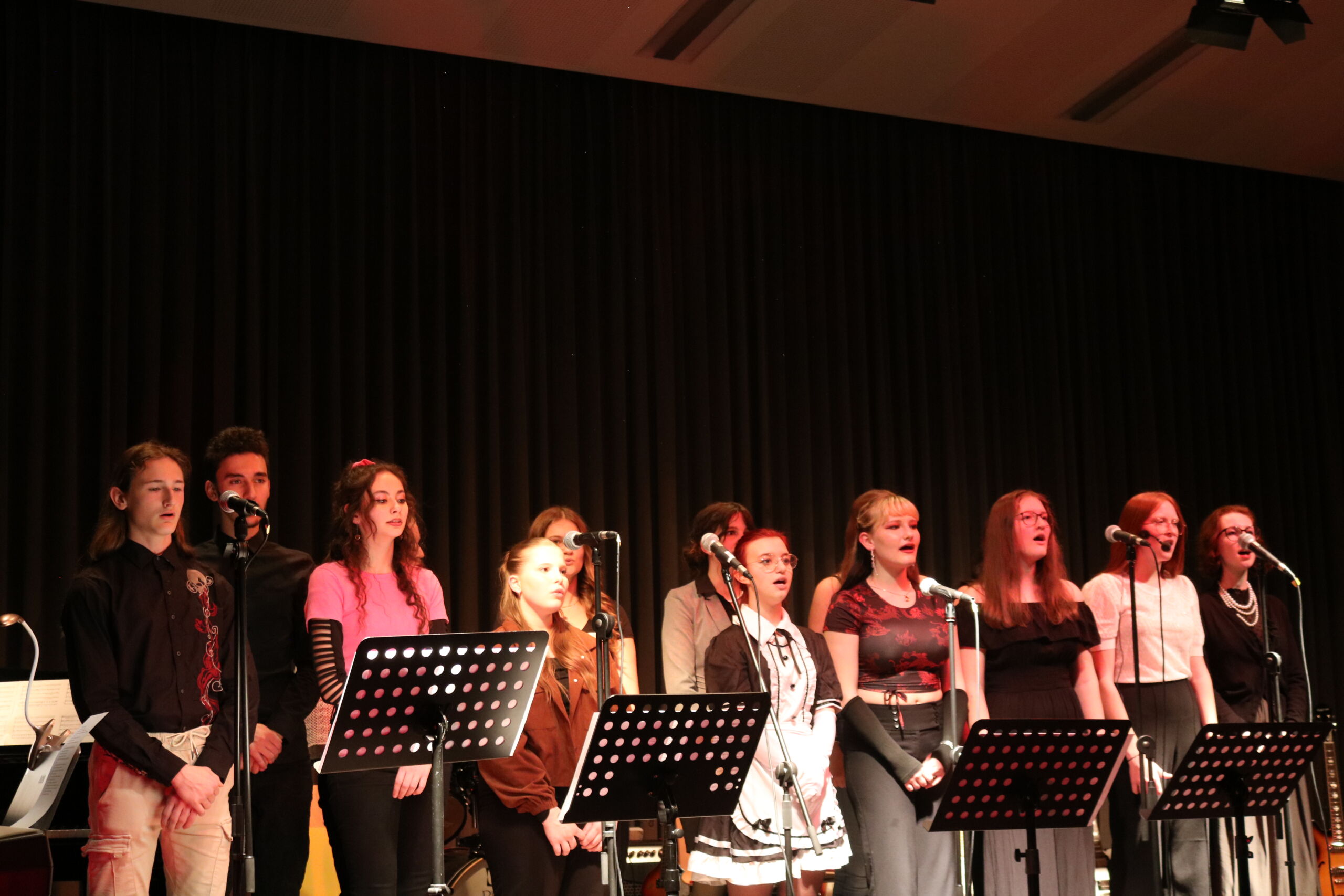 Die großartigen schauspielerischen Leistungen der Schüler:innen und das von Schulband, Schulchor und Einzeldarbietungen getragene, sehr abwechslungsreiche musikalische Programm in Form fein abgestimmter Chorarrangements, fetziger Bandnummern und charmanter Bläsersätze, sowie die erstaunlichen sängerischen und instrumentalen Leistungen, belohnte das begeisterte Publikum mit einem donnernden Applaus und Standing Ovation! Im Anschluss erwartete die Besucher:innen ein vom Elternverein und den Schüler:innen liebevoll gestaltetes Buffet.