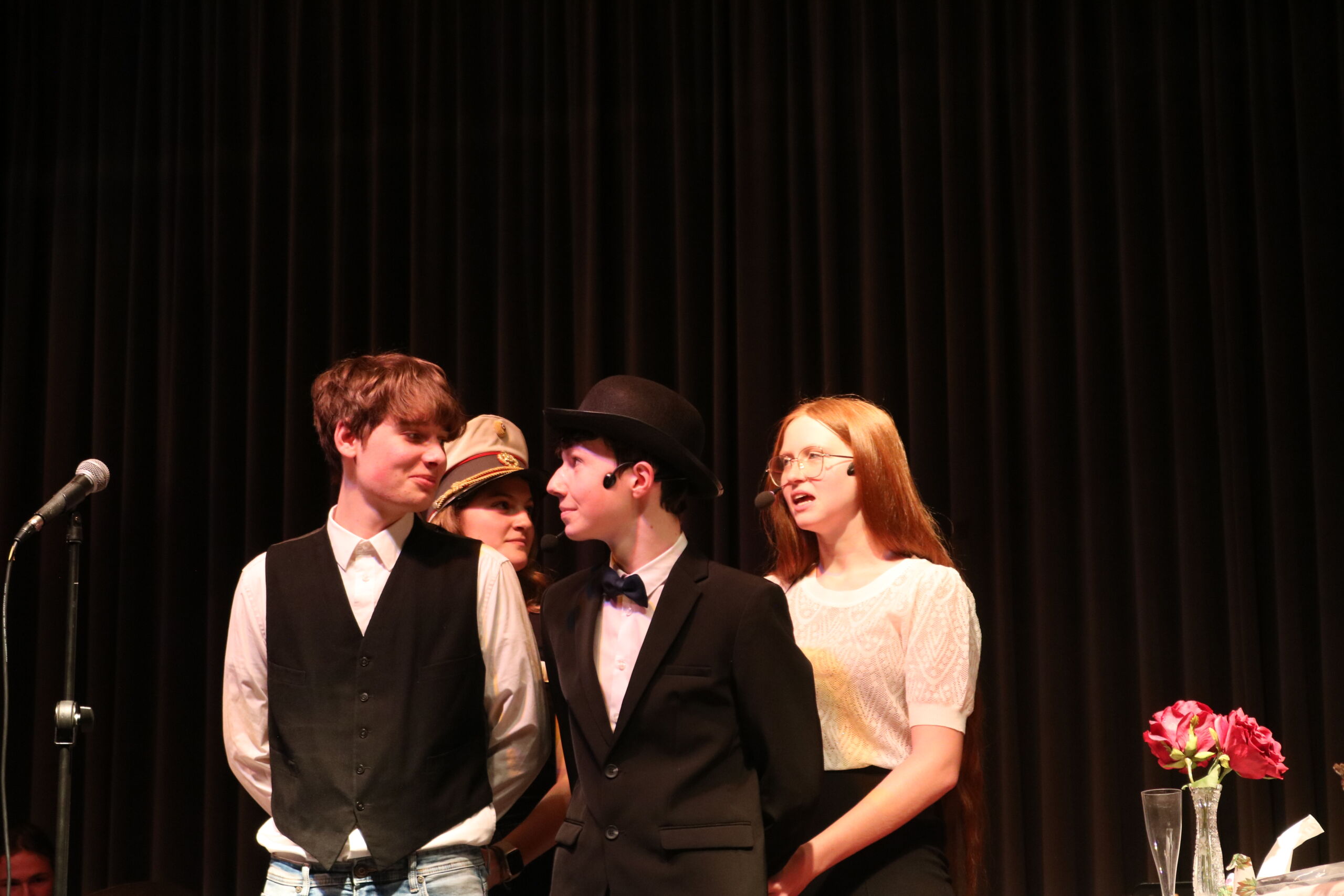 Am Donnerstag, den 18. April 2024 um 19 Uhr, fand im Festsaal der Musikschule Eisenerz der alljährliche beliebte Kulturabend des Kreativzweigs am BORG Eisenerz statt. Der von den Schüler:innen selbst geschriebene Krimi mit Musik, diesmal unter dem Motto „Furcht und Adel“, entführte die zahlreichen Zuschauer:innen in die Welt einer adeligen Familie: Eine ältere Dame, Narcissa von Bismarck, lädt ihre Familie zu sich ein, um ihr baldiges Ableben zu verkünden und ihren Nachlass zu besprechen. Während des gemeinsamen Abendessens wird ihre Lieblingstochter Henriette ermordet. Die eifersüchtige Tochter Theresa, verheiratet mit dem unterkühlten Wilhelm, deren einfältiger Sohn Otto, der sehr weinerliche Ehemann der Ermordeten, Vincent, deren pubertierende Tochter Maxi, die Hausangestellte Anzilla, sowie die dritte Tochter von Narcissa, das berühmte Popsternchen Elisabeth „Lissy“, werden von der Kommissarin Charlotte und der Polizistin Lilli eingehend verhört. Die Familienmitglieder belasten sich gegenseitig und es kommen Geheimnisse ans Tageslicht, die schließlich zur Überführung des Mörders Wilhelm und dessen Gehilfen Otto führen.