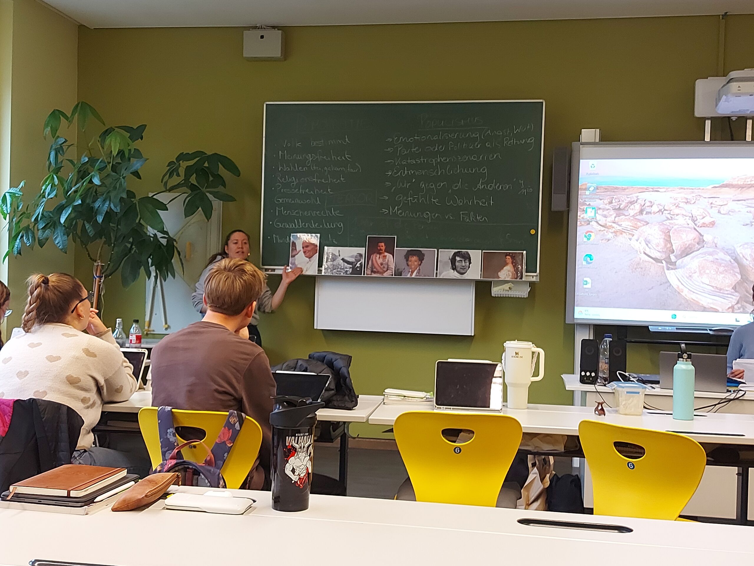 Ein wesentliches Ziel des Workshops war es, bei den Schüler:innen ein Grundverständnis dafür zu erzeugen, warum unterschiedliche Menschen extremistische und autoritär-populistische Ideologien attraktiv finden. Zugleich wurde auf Gefahren dieser Haltungen für unser demokratisches Zusammenleben verwiesen und Möglichkeiten aufgezeigt, was jeder Einzelne im Alltag gegen die genannten Phänomene tun kann.