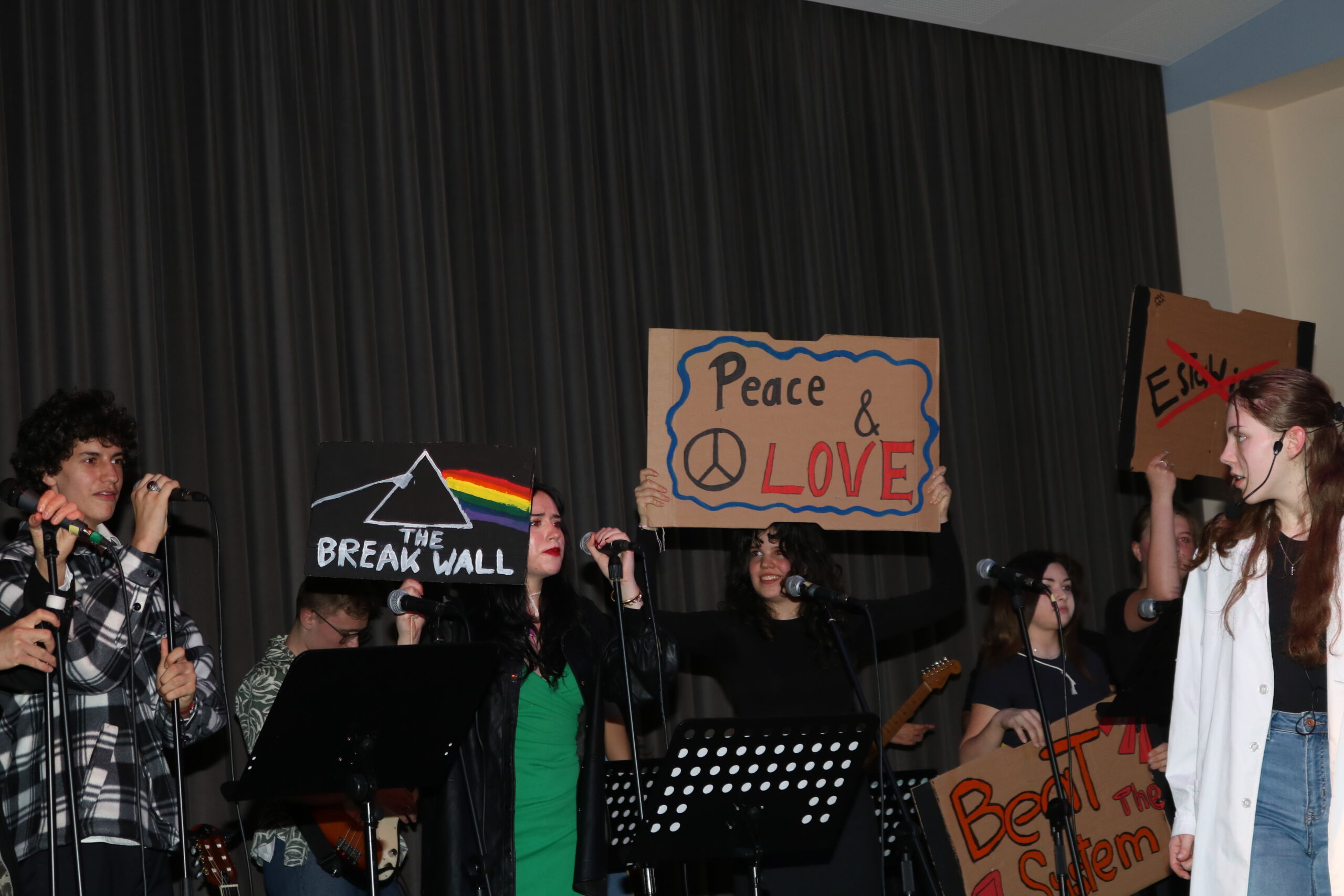 Am Donnerstag, dem 24. April 2025 fand um 19 Uhr im Festsaal der Musikschule Eisenerz der traditionelle Kulturabend des BORG Eisenerz statt, an dem die Schüler:innen des Kreativzweigs alljährlich ein abendfüllendes Programm bieten. Das von den Jugendlichen geplante, geschriebene und gespielte Stück mit dem Titel „The time between us“ entwickelte sich aus einer Idee der 7. Klasse und wurde mithilfe der Lehrerinnen Lisa Abraham (Texte, Schauspiel, Regie), Verena Hambammer (Requisiten, Bühnenbild) und Gudrun Schiefer- Hoyer (Musik) unter Mithilfe von Dominik Strutzenberger (Musik, Tontechnik) und Erich und Susanne Niederhofer (Tontechnik, Lichttechnik) auf die Bühne gebracht.