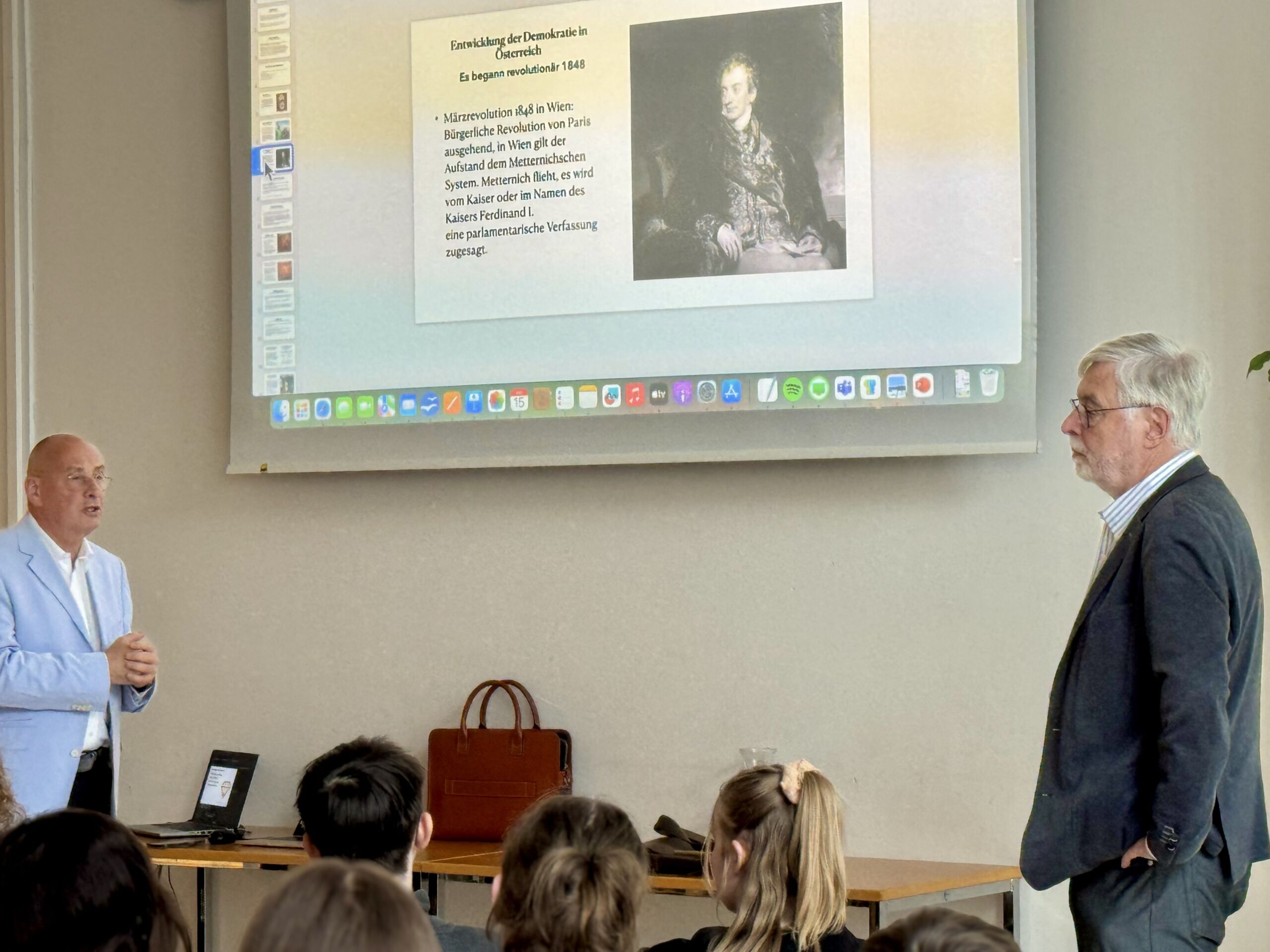 Kernthema des Projektes war die Entwicklung unserer Demokratie in Österreich von den Anfängen demokratischer Strömungen schon in der Habsburgermonarchie bis in die Gegenwart. Dabei stellten sich die beiden Experten der Diskussion mit den Schüler:innen: Hat die Mehrheit immer recht? Welche Stärken und welche Schwächen weist die Demokratie als Herrschaftsform auf? Wie steht es um die Neutralität in Österreich? Was macht Österreich überhaupt aus? Ergänzt wurden der Vortrag und die Podiumsdiskussion durch Berichte von Schüler:innen mit Migrationshintergrund, die über die politische Lage in ihren früheren Heimatländern sprachen. Mit diesem Projekt gelang es, das Demokratiebewusstsein der Schüler:innen zu stärken und gemeinsam an einem auch in Zukunft demokratischen und den Menschenrechten verpflichteten Österreich zu bauen.