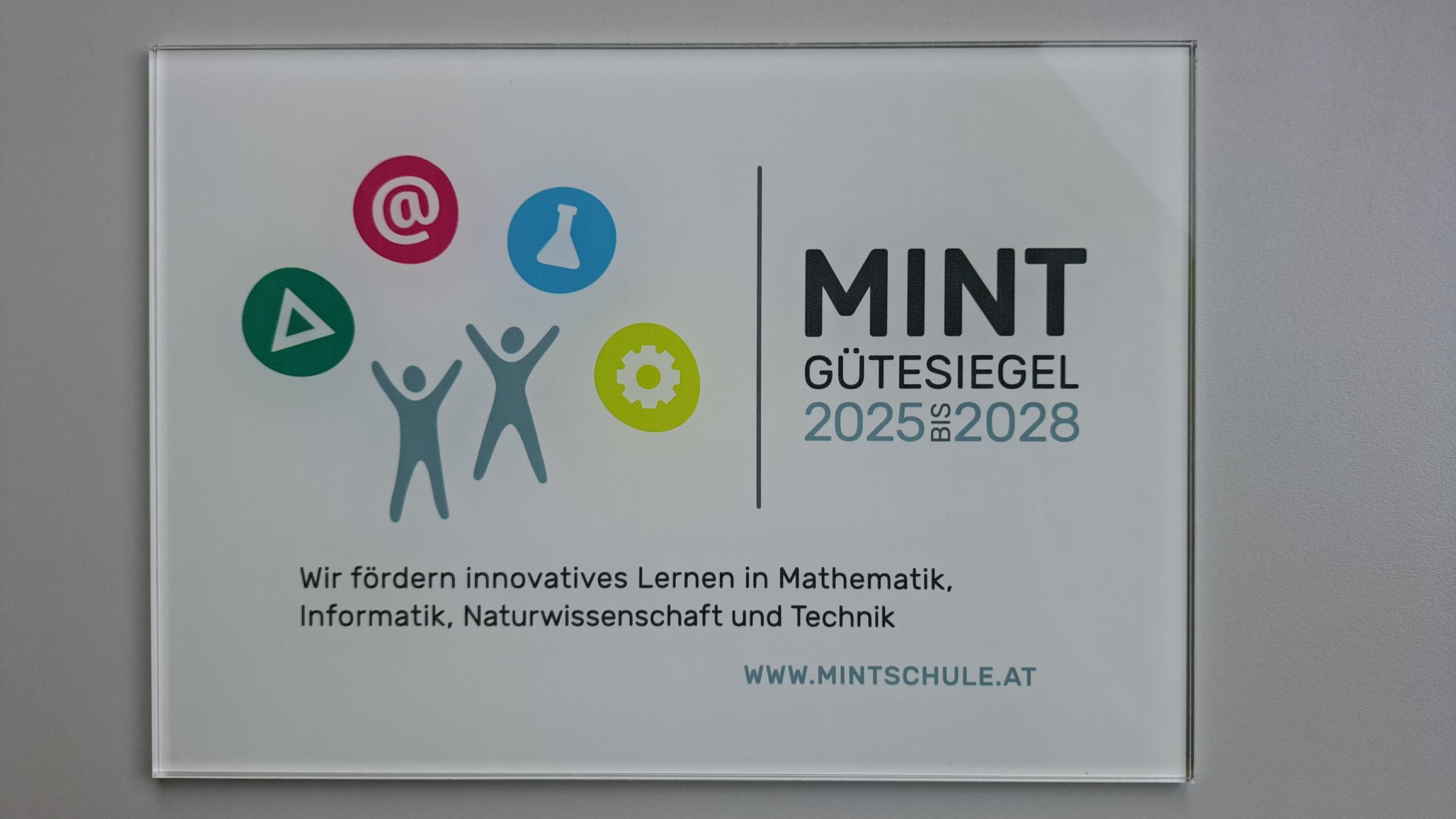 Mit dem MINT-Gütesiegel wird das große Engagement der Schule für eine zukunftsorientierte, praxisnahe und innovative MINT-Bildung ausgezeichnet – ein wichtiger Impuls für junge Menschen in einer zunehmend technologieorientierten Welt.