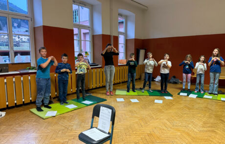 Am 17.12.2025 besuchten die Musiker:innen der 8. Klasse des BORG Eisenerz die VS Eisenerz, um für die Kinder der 2. und 3. Klasse eine Weihnachtsstunde zu gestalten. Es gab einen Stopp-Tanz zu „Last Christmas“, „O Tannenbaum“ als Bewegungslied, das beliebte Lied „In der Weihnachtsbäckerei“ sowie „Leise rieselt der Schnee“ mit Rhythmusinstrumenten. Die Kinderaugen leuchteten, und alle sangen und trommelten begeistert mit. Zum Schluss entspannten alle bei einer weihnachtlichen Gedankenreise und freuten sich über eine kleine schokoladige Überraschung. Weihnachten kann kommen!