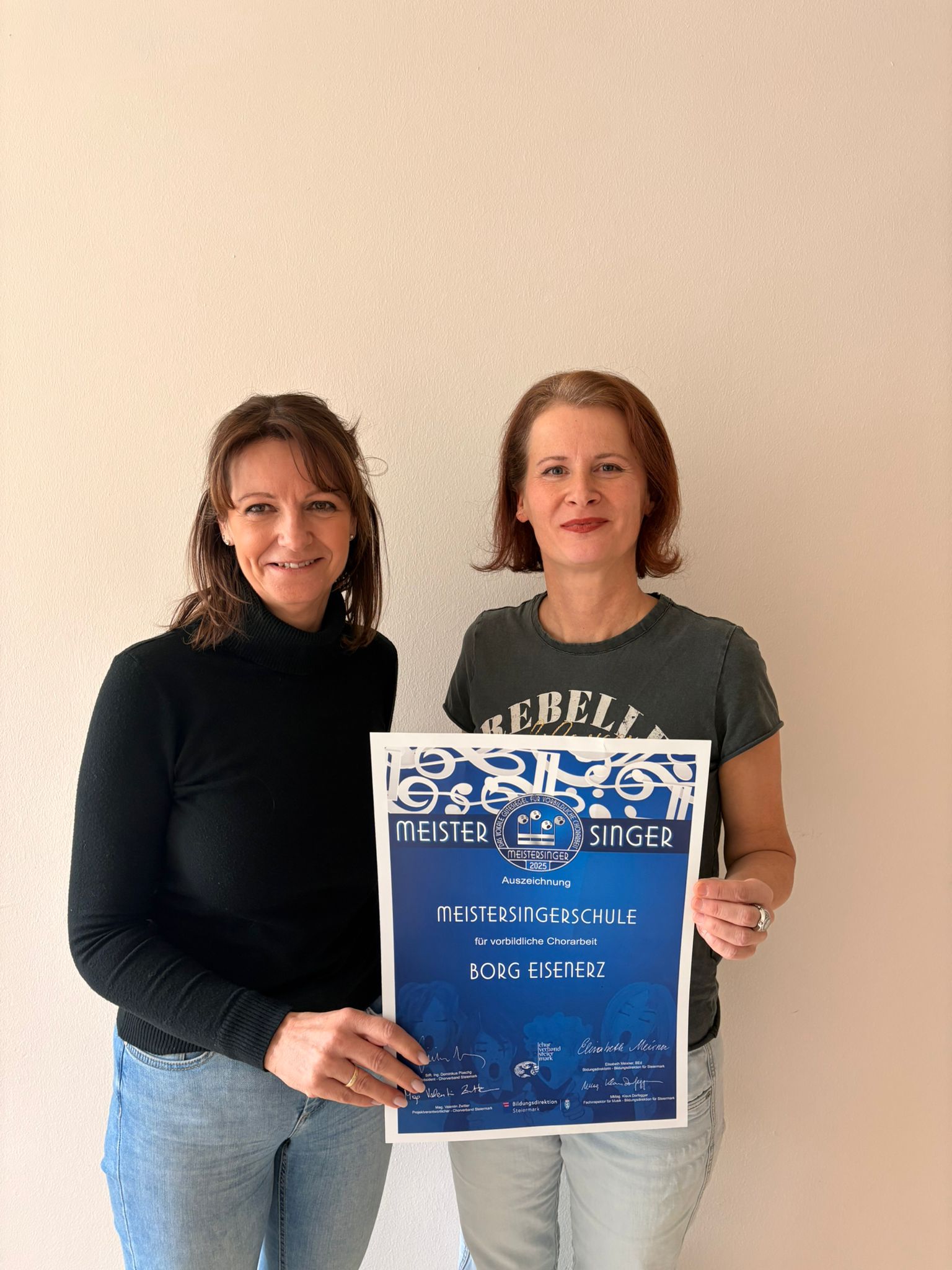 Für das BORG Eisenerz durfte Mag. Gudrun Schiefer-Hoyer die Auszeichnung bereits zum 13. Mal in Folge entgegennehmen. Diese langjährige Beständigkeit zeigt eindrucksvoll die kontinuierlich hohe Qualität der chorischen Arbeit und den großen Stellenwert der Musik an der Schule.